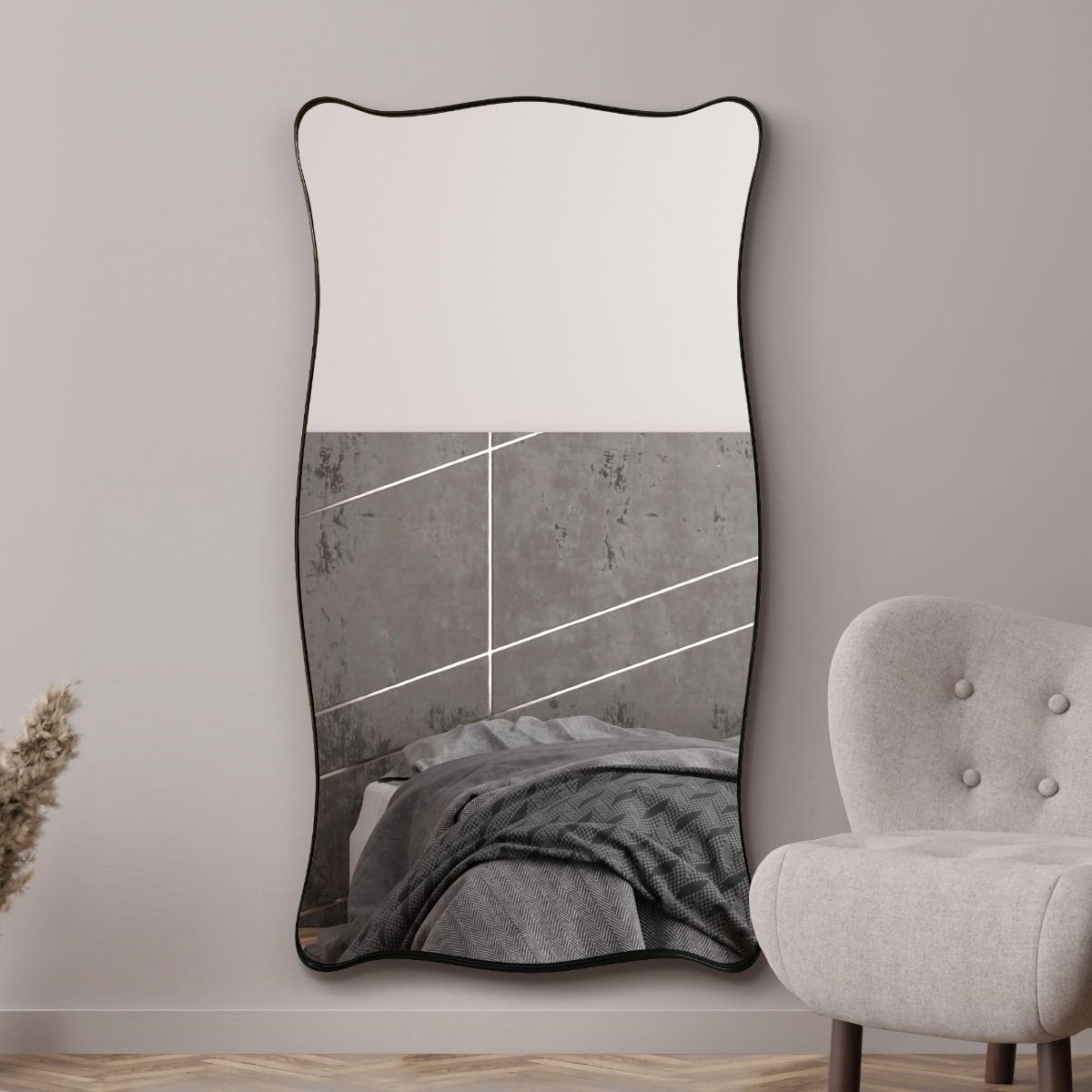 Lorelei - New Black Metal Rectangular Wavy Tray Effect Frame Wall Mirror 71" X 39" (180CM X 100CM)
