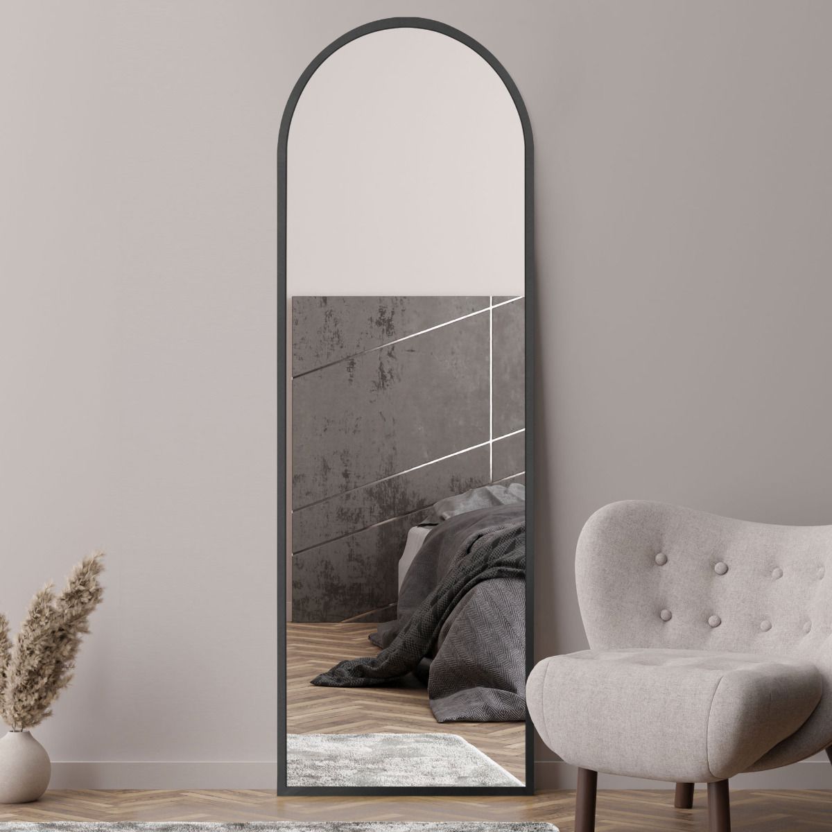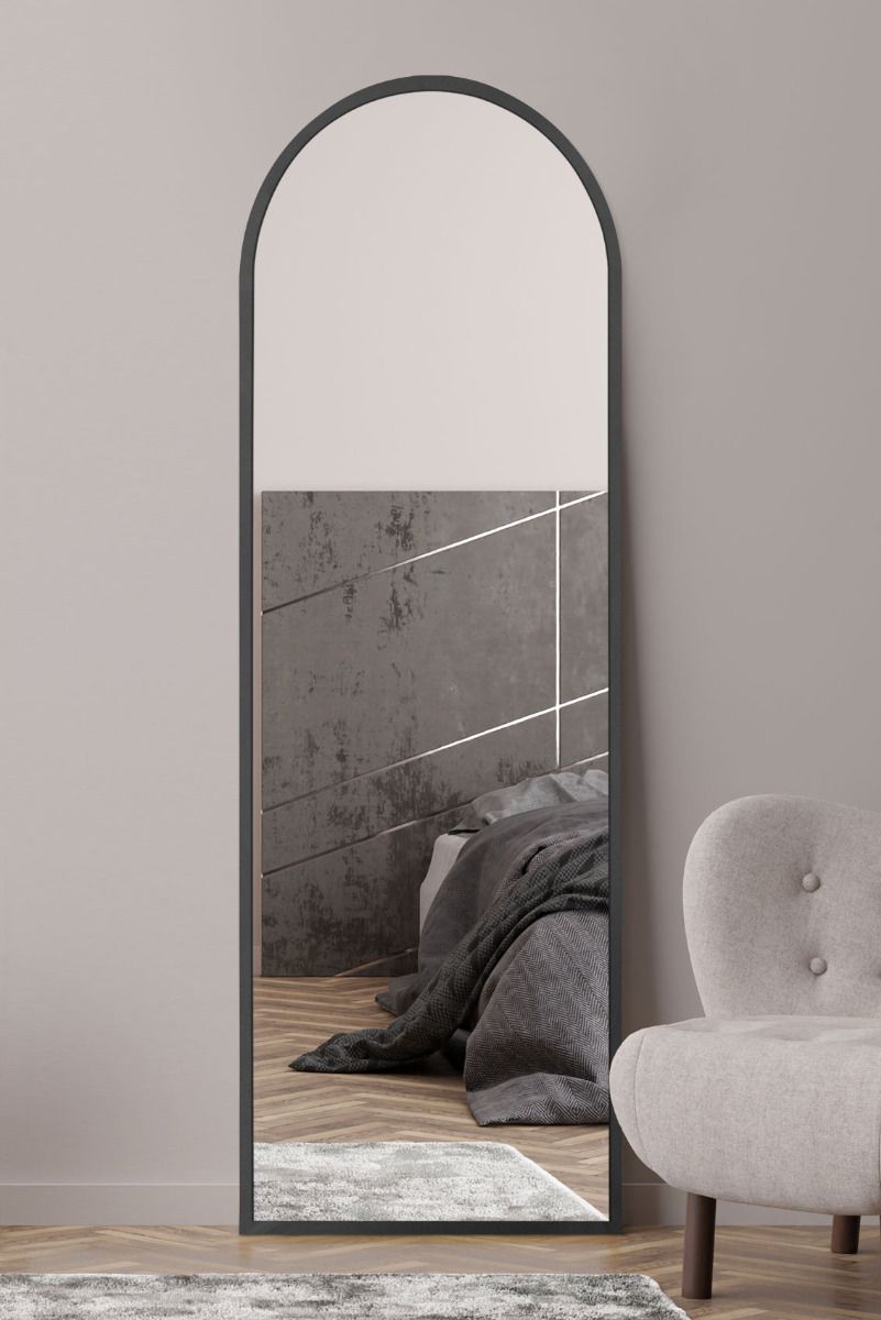 Black Framed Arched Leaner/Wall Mirror 71" X 24" (180CM X 60CM)