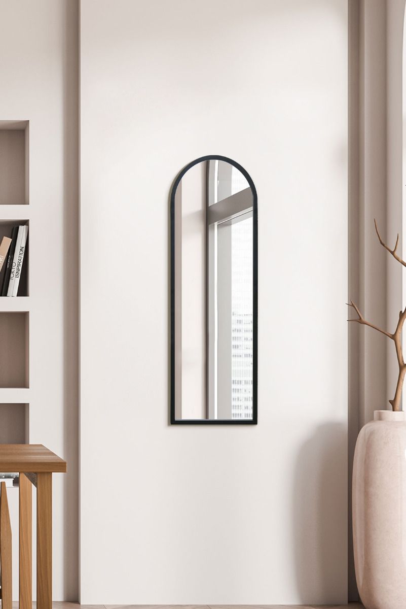 Black Metal Framed Arched Wall Mirror 47" X 16" (120CM X 40CM)