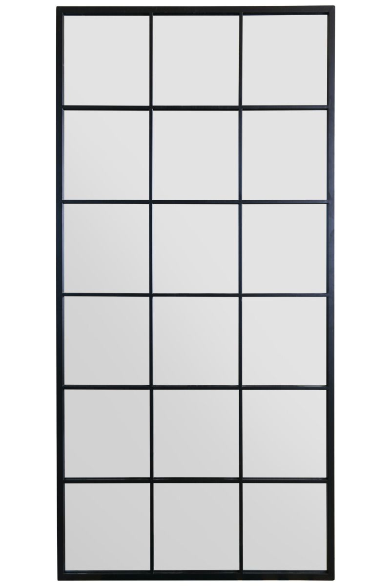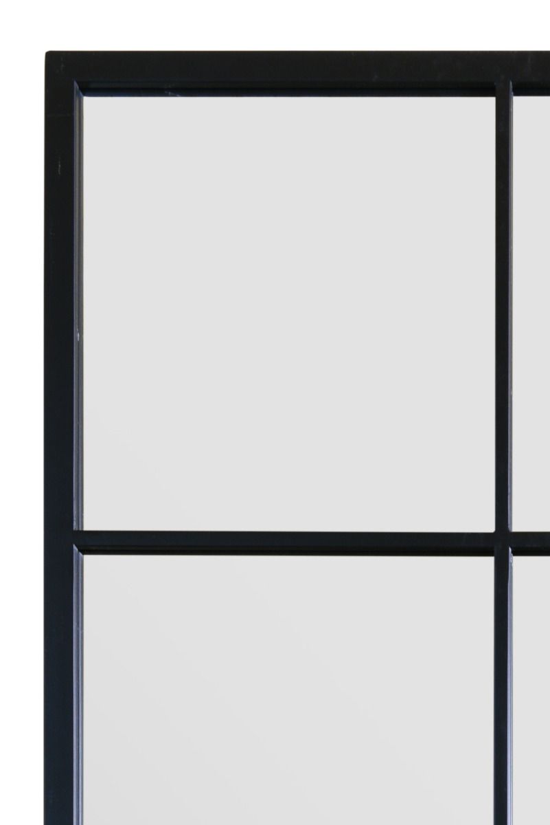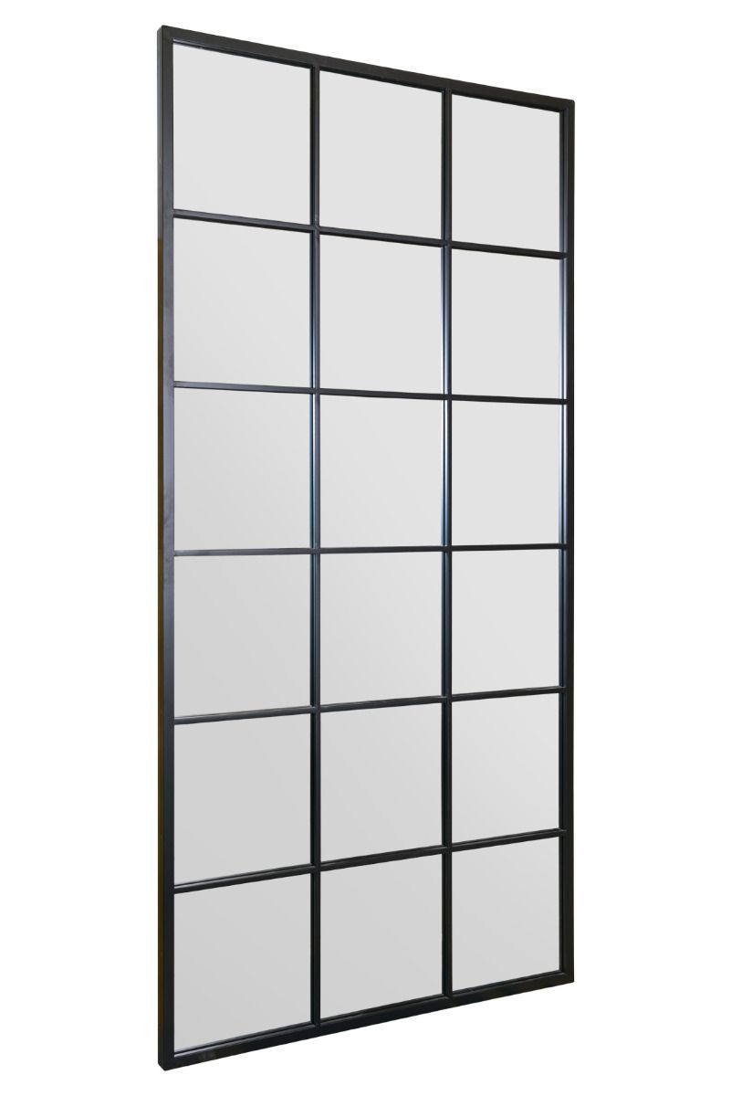 Enhance your decor with the contemporary elegance of this full-length mirror featuring a sleek black metal window frame and quality mirror glass. Designed for versatility, this mirror can be wall-hung or used as a free-standing leaner, providing a full-body length reflection that adds style to any room. It comes with hooks for both portrait and landscape wall hanging, pre-fixed to the backing board for easy installation and a modern, flush appearance against the wall. Crafted from high-quality materials, this mirror weighs approximately 20kg, ensuring durability. For secure installation, consider adding optional solid wall fixings (swfixings) or plasterboard fixings (pmfixings) to your order. The mirror measures 69" x 33" (174cm x 85cm) with a slim profile of 3.5cm in depth.