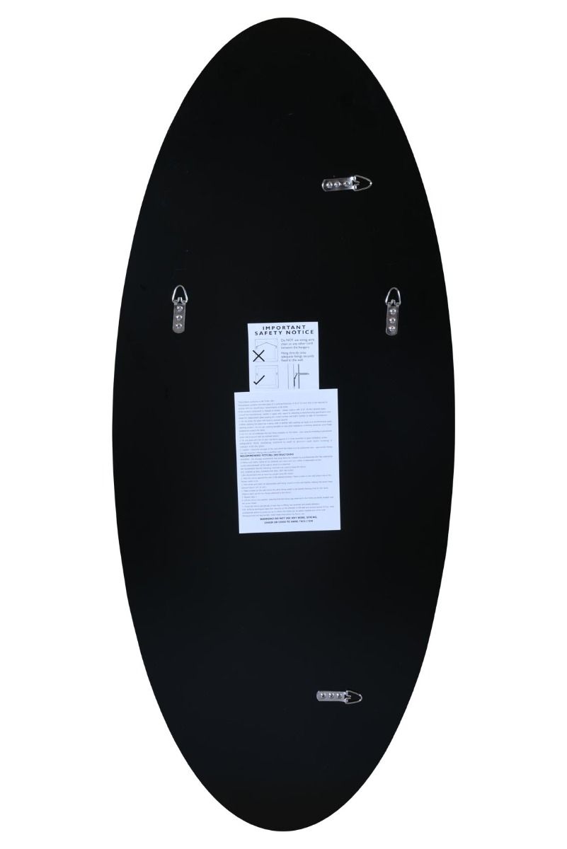 Enhance your living space with the New Mirror Range, featuring a stunning Silver Polished Edge Oval Mirror mounted on a sleek Black Wooden Backing. This mirror offers a seamless black bezel edge, adding a touch of modern elegance to any room. Designed with a contemporary Pebble or Pond theme, it effortlessly complements modern decor. The mirror is crafted for wall hanging, with pre-installed hooks for easy and flush installation. Weighing approximately 12kg, this premium-quality mirror requires solid wall (swfixings) or plasterboard (pmfixings) fixings for a secure mount. Overall size: 47" x 20" (120cm x 50cm).