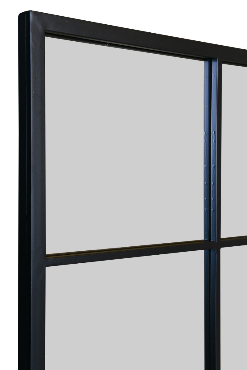 Explore a mirror featuring a striking Black Metal Window Frame and high-quality Mirror Glass. Whether mounted on the wall or used as a leaner mirror for a full-body view, this piece offers both functionality and style.