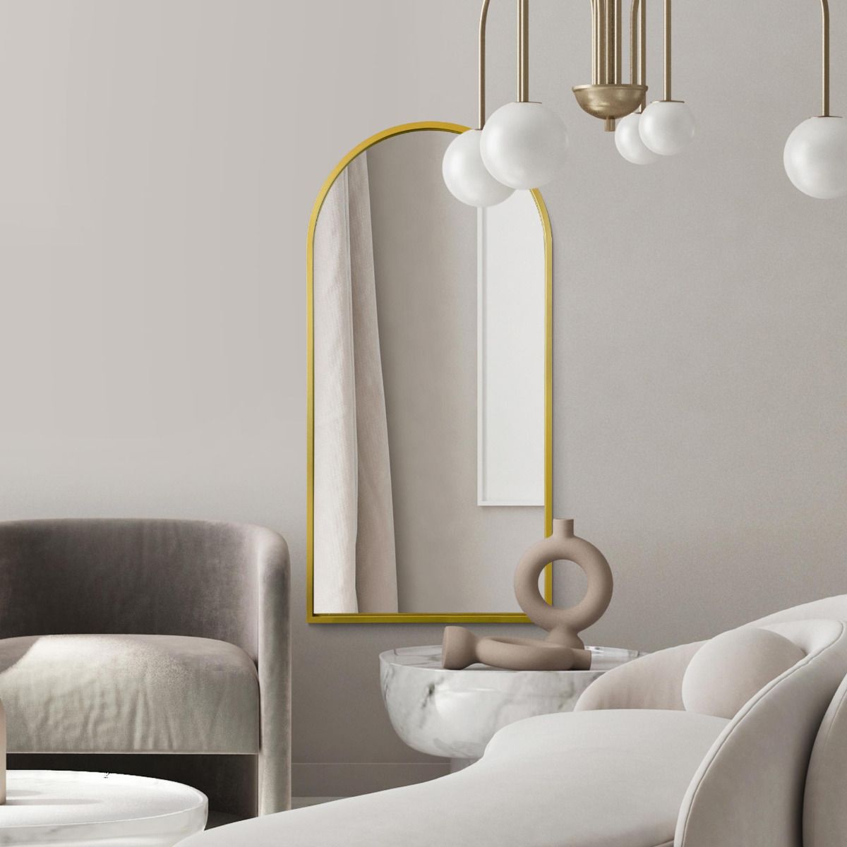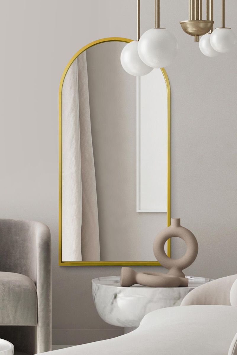 Enhance your decor with this elegant arched mirror, blending functionality with contemporary design. Perfect for adding a statement piece to your home or office.