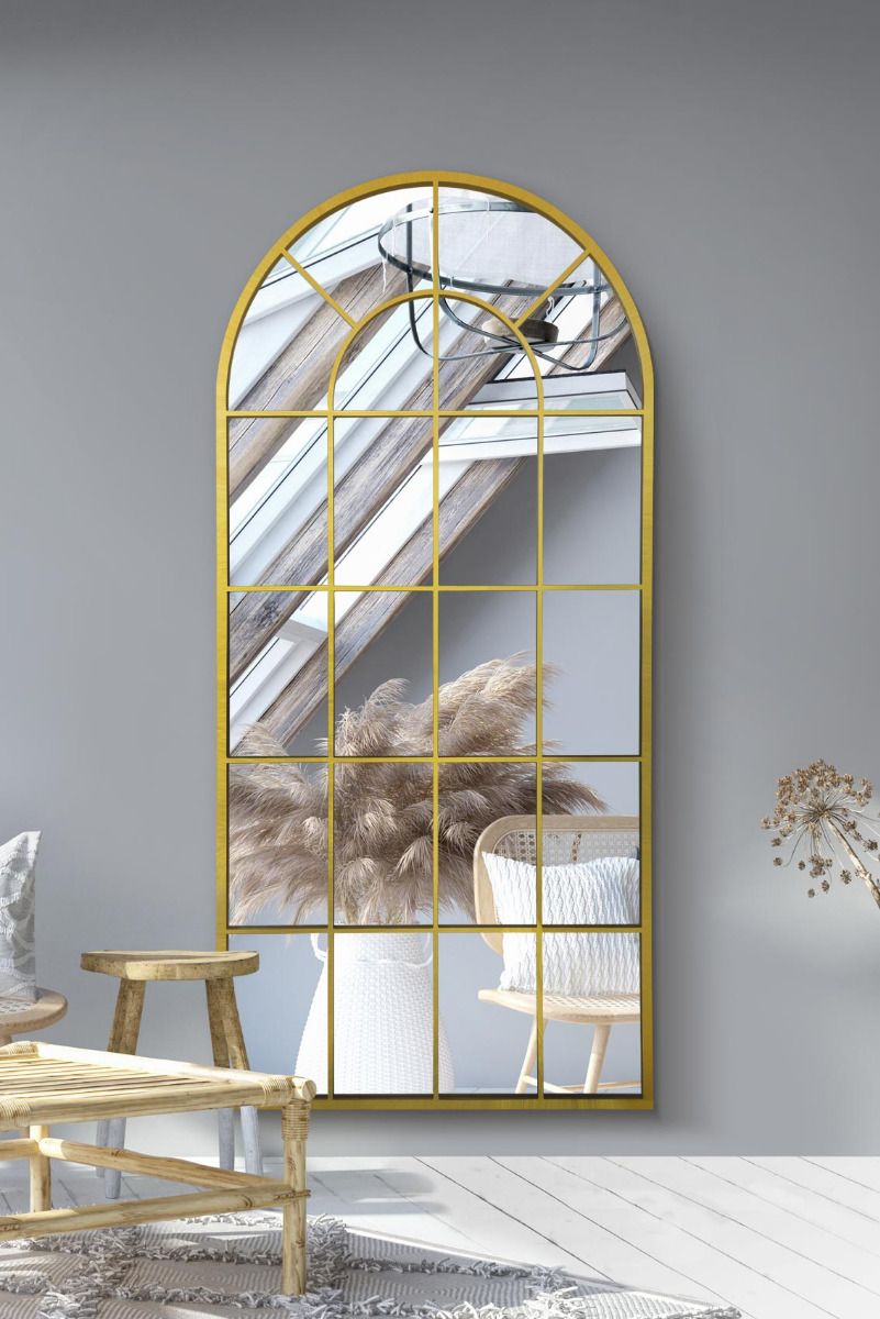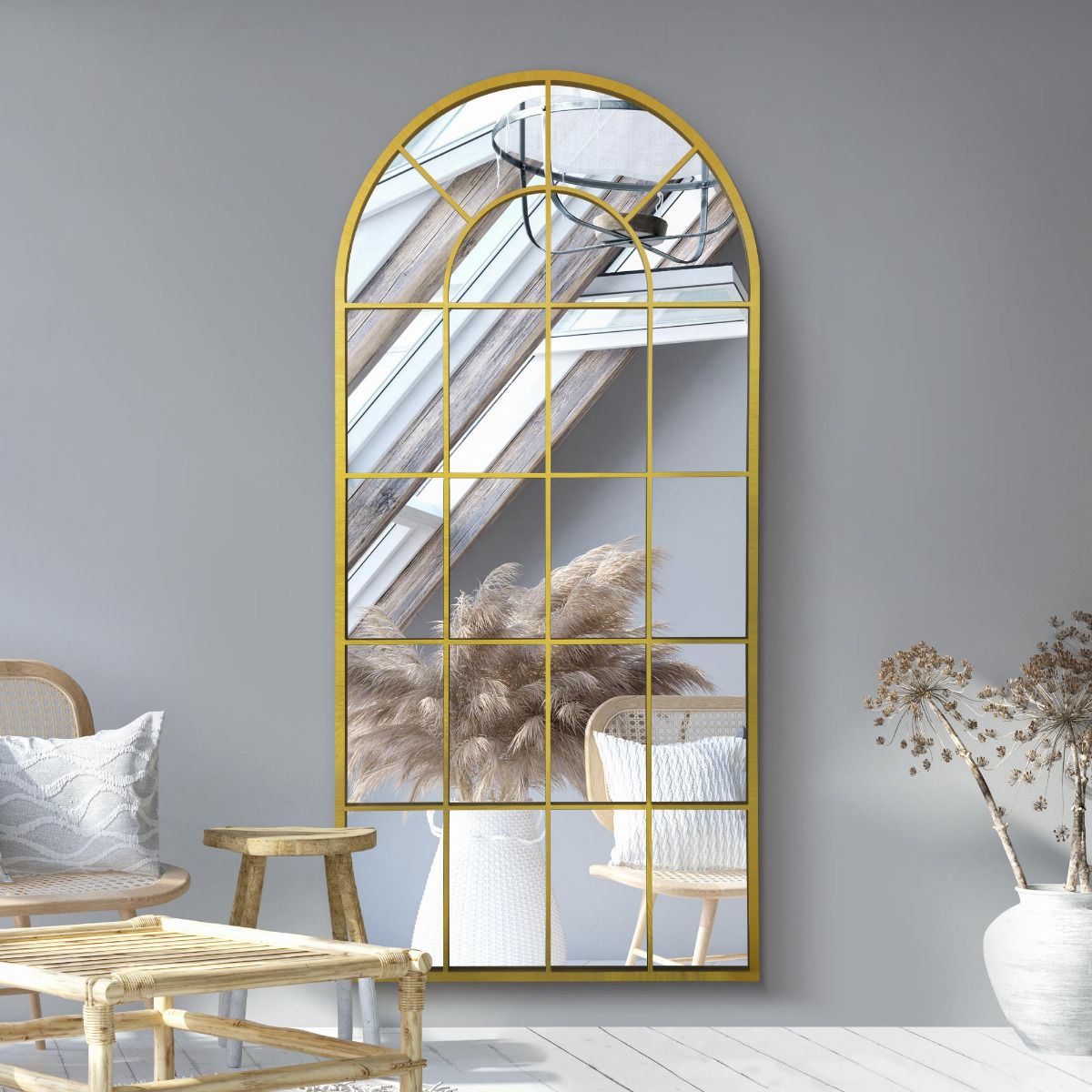 Gold metal Arched Window Leaner / Wall Mirror 71" X 33.5" (180x85CM)