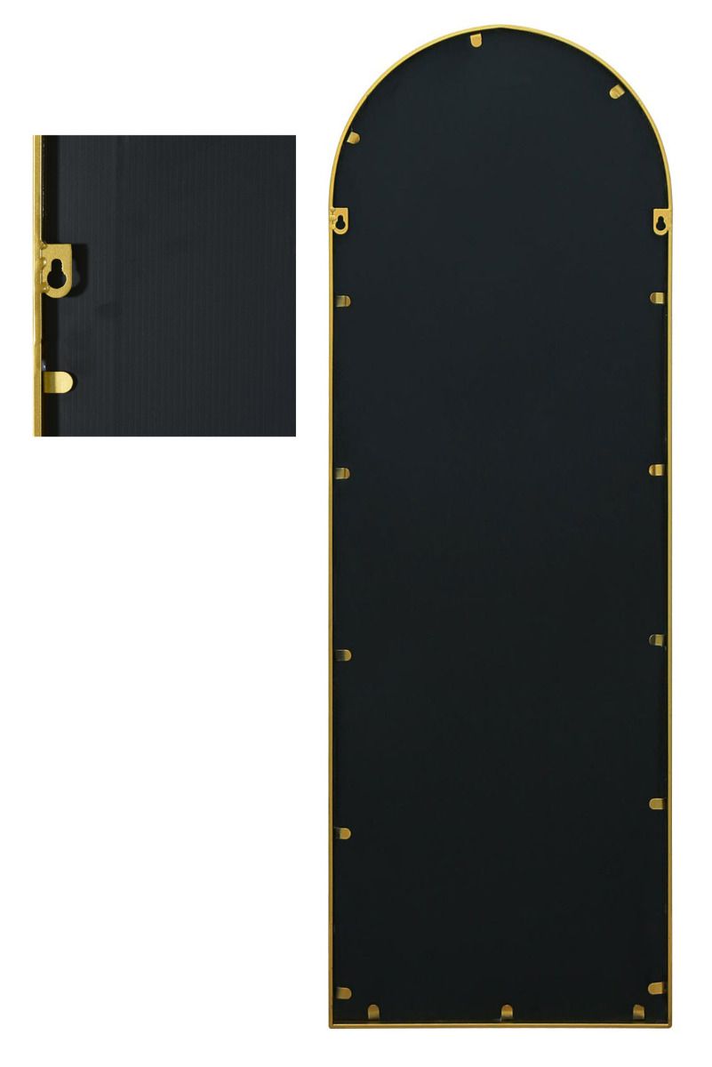 Introducing our latest mirror range featuring a sophisticated gold metal frame fitted with premium mirror glass and a waterproof backing. This versatile mirror is designed for both wall hanging and freestanding use as a leaner, equipped with keyhole-style welded fixings for effortless installation. Its sleek design ensures the mirror sits flush against the wall for a modern aesthetic. Crafted from the finest quality materials, this mirror is substantial yet weighs approximately 10kg. It measures 47" x 16" (120cm x 40cm), with a frame that is 2cm wide at the face and 3cm deep. For optimal placement, ensure to use suitable wall fixings according to your wall type, making it an ideal choice to enhance any space with its elegant style.