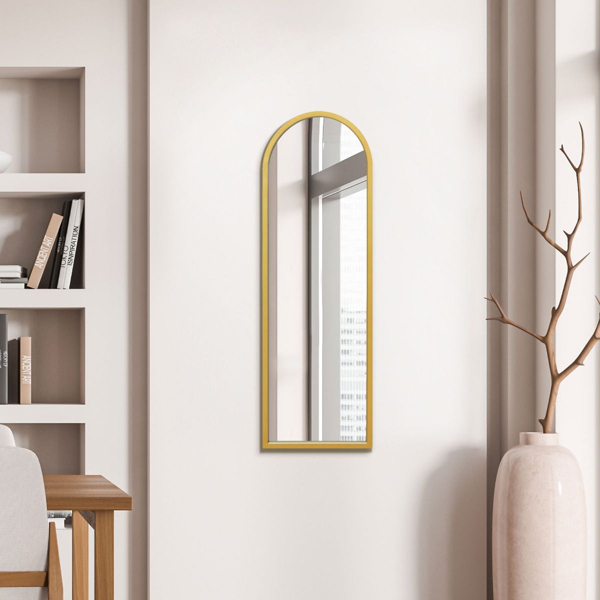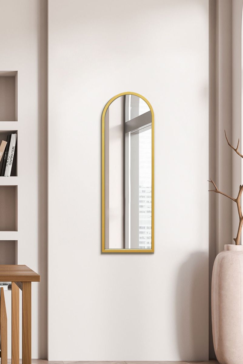 Gold Metal Framed Arched Wall Mirror 47" X 16" (120CM X 40CM)