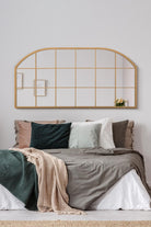 Ivy - Gold Metal Framed Window Arched Wall or Mantle Mirror 69" X 33" (174CM X 85CM)