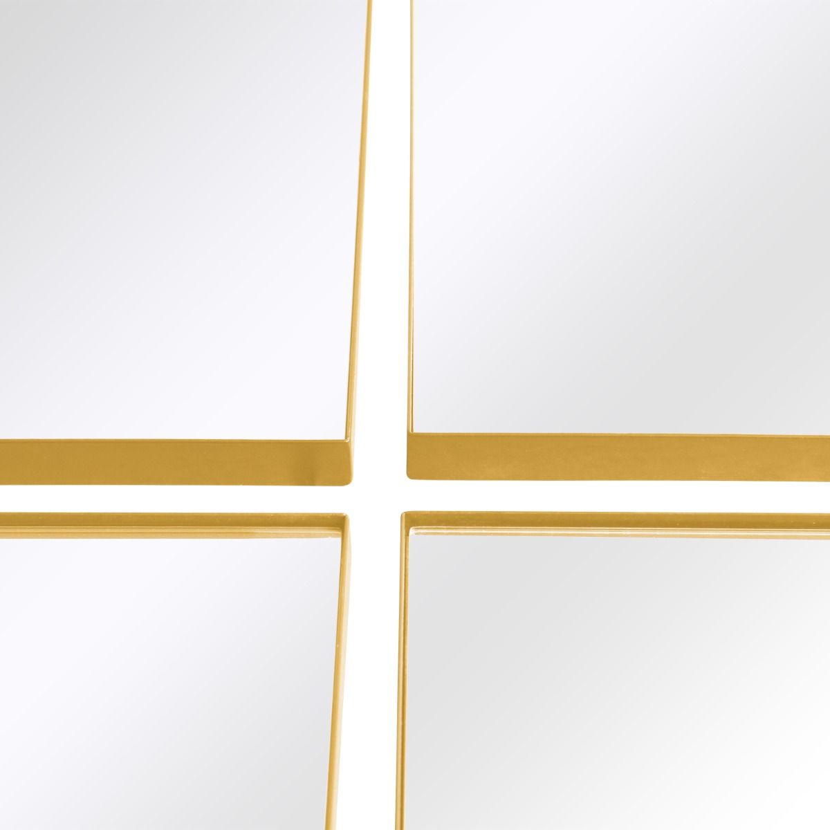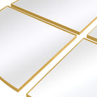 Present the New Quadrants Mirror range. Featuring Gold Metal Contemporary Frame made up of 4 individual pieces. Quality Mirror Glass. This Mirror is designed to be used as a wall hung Mirror which, once installed will give an incredible result! The mirror comes with hooks pre welded for wall hanging the frame. There are reverse keyhole fittings. You simply need the correct wall fixing to suit your wall for fuss free installation. This allows the mirror to sit as flush to the wall as possible for that modern look. Being the very finest quality makes this mirror heavy and weighs around 20kgs. Overall size 54" X 54" (140CM X 140CM).
