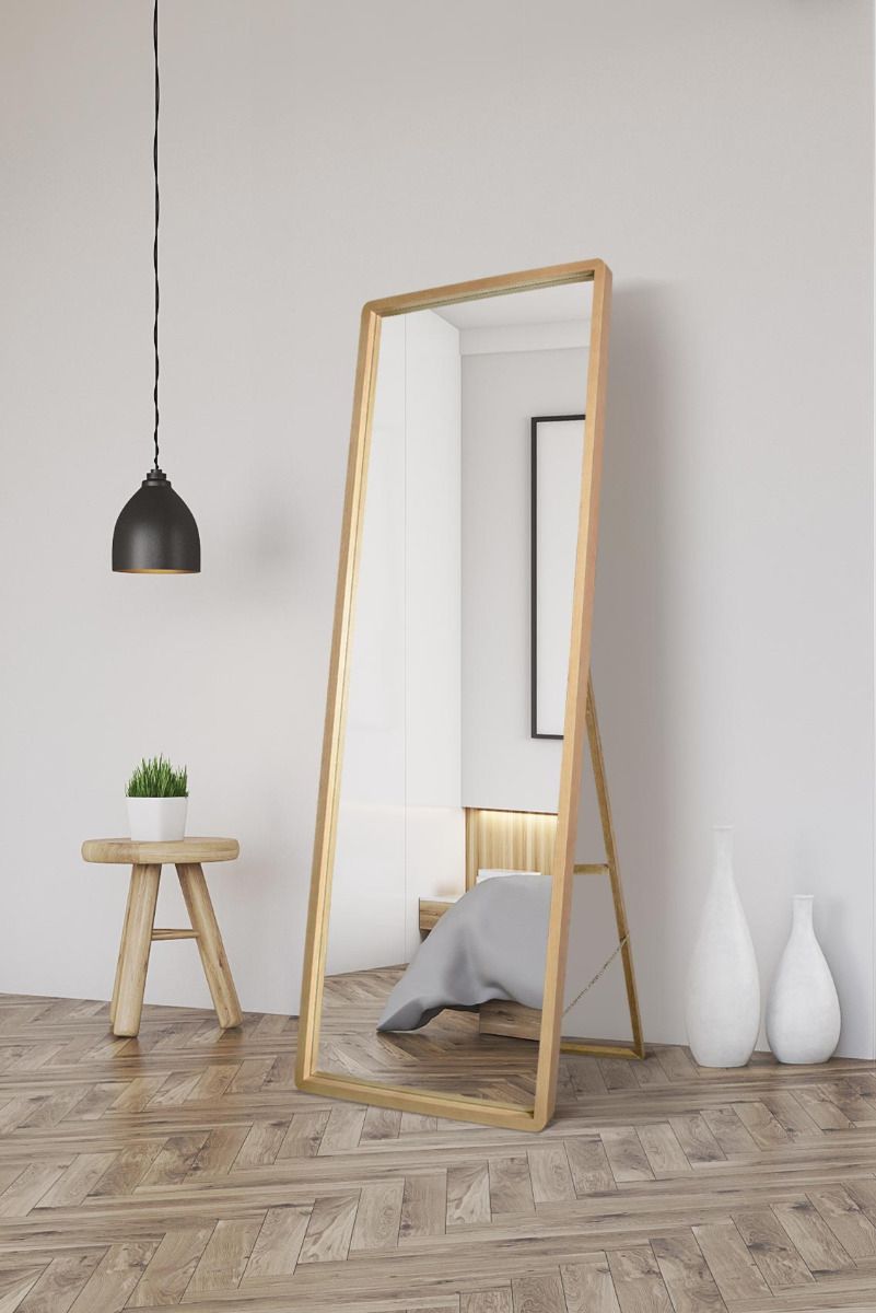 Introducing the New Mirror range, featuring a solid oak rounded corner frame and premium mirror glass. This mirror is designed to be free-standing, offering a full-body length reflection experience.