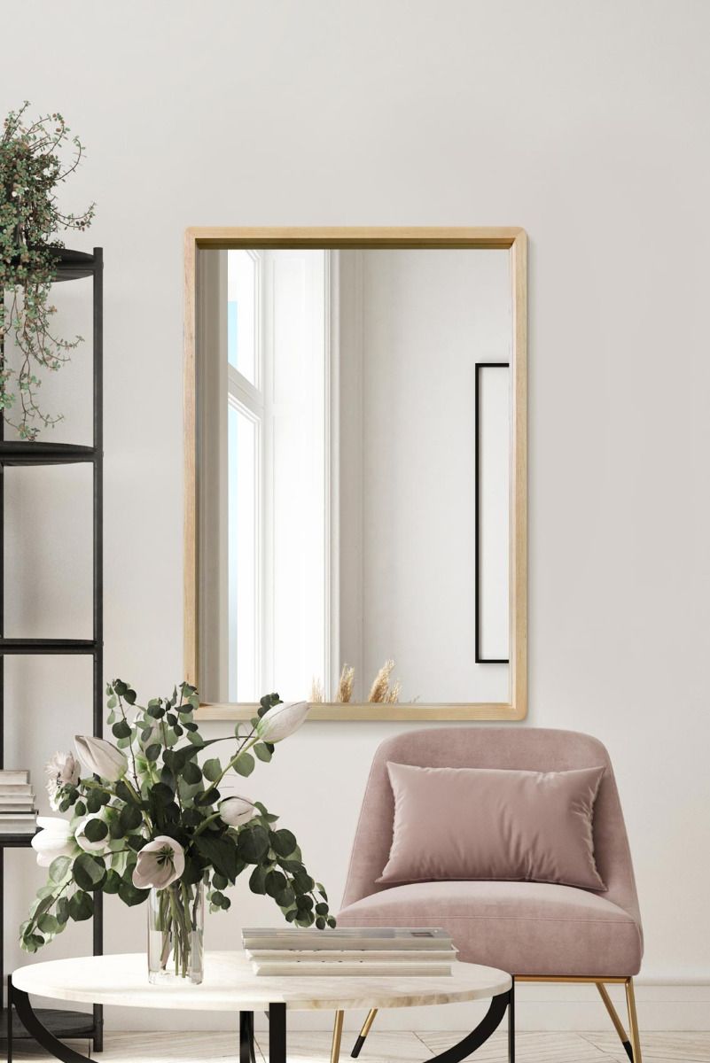 Introducing the New Mirror range. This mirror features a solid oak rounded corner frame and premium mirror glass, designed for wall hanging to add a touch of simplistic classic charm to your space.