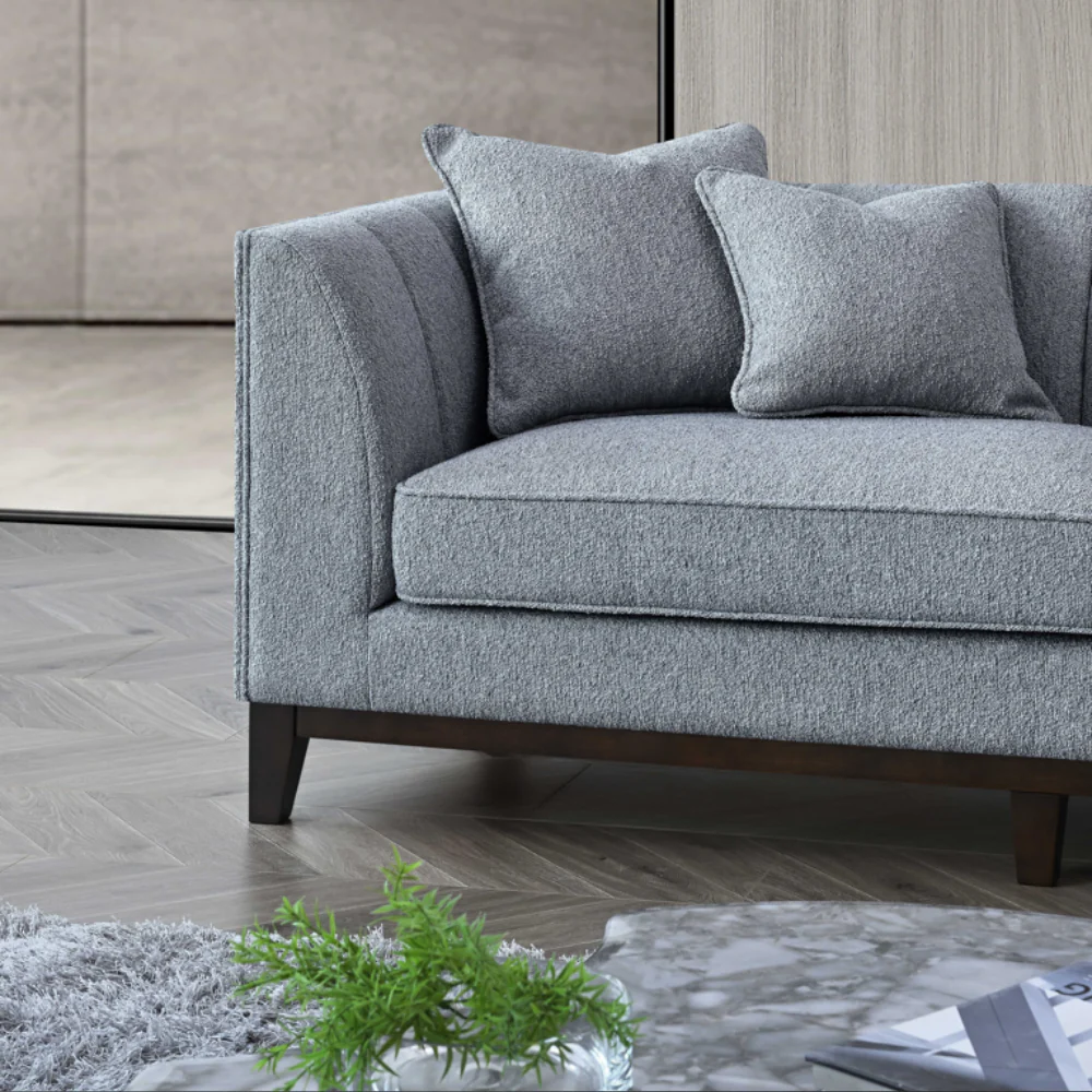 Designed for comfort and durability; the Cooper range is crafted from a durable wooden frame, the highest quality foam padding and finished in the soft textured boucle fabric.