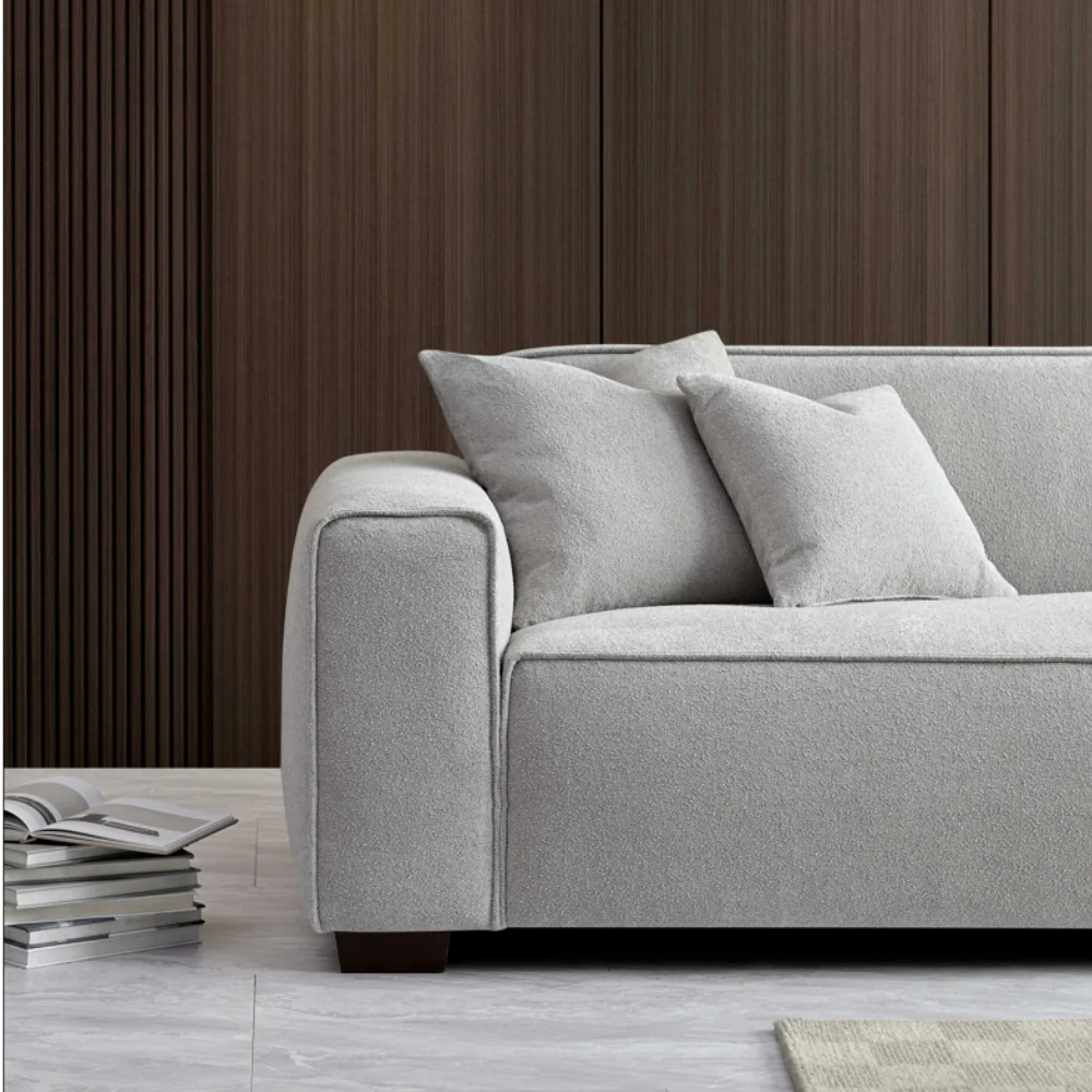 Upholstered in a contemporary boucle fabric in a range of neutral tones, the Dakota sofa is modern minimalism at its best.