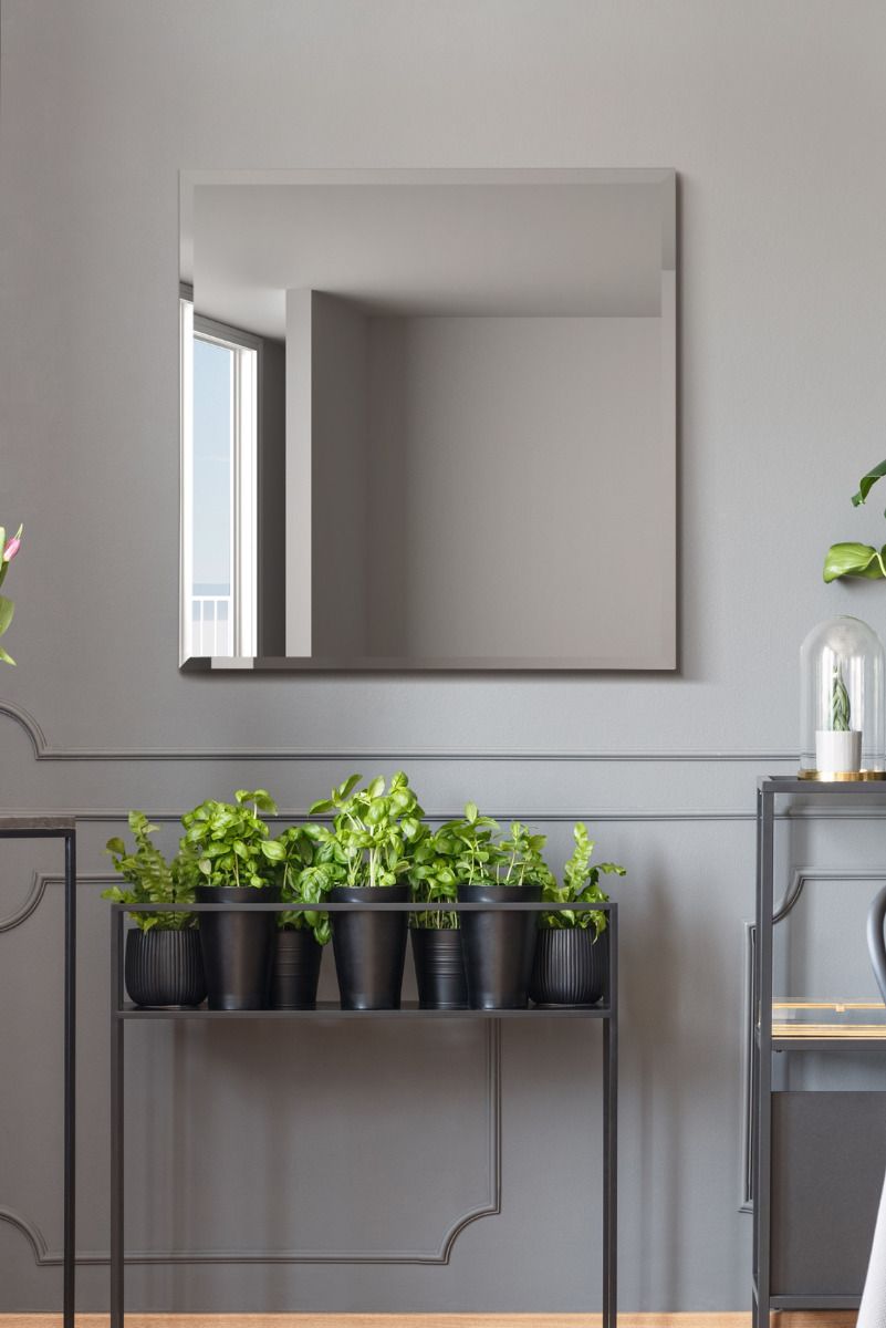 All Glass Modern Bevelled Square Wall Mirror 27" X 27" (70x70CM)