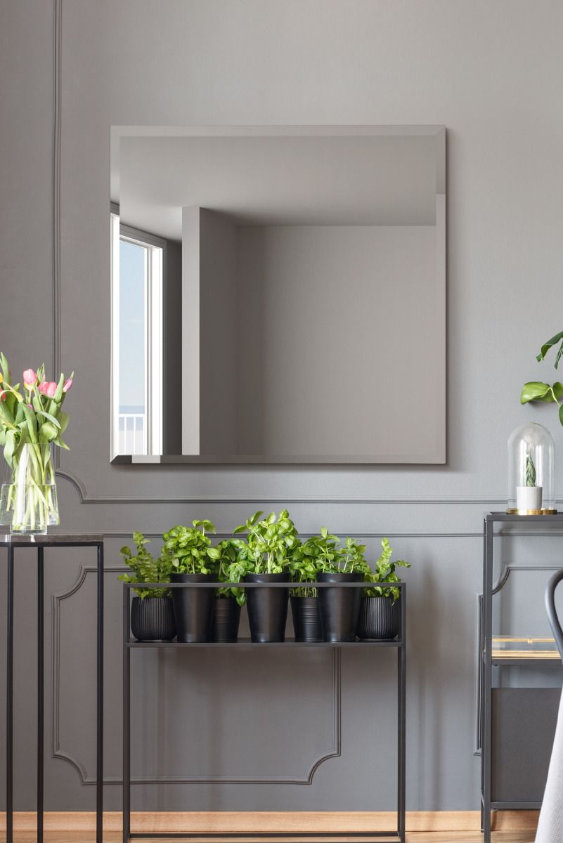 Introducing our new mirror range featuring a stunning square design with an all glass bevelled premium mirror attached to a sleek black backing, designed specifically for wall hanging. This mirror is crafted to enhance modern interiors with its elegant and minimalist look.