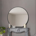 Aurora - Black Framed Flat Bottom Circular Wall Mirror - Perfect for the Mantle! 50" X 47" (126CM X 120CM)