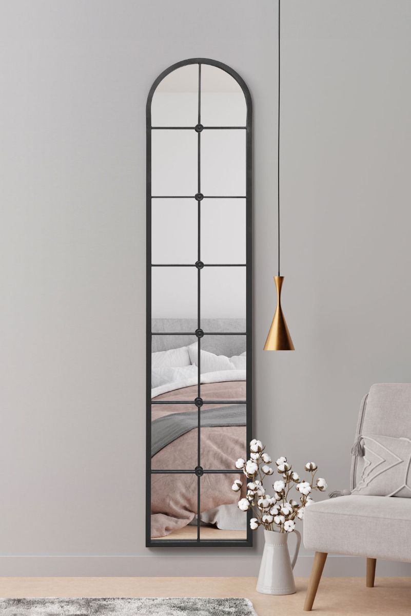 Black Framed Arched Leaner Wall Mirror 75" X 16" (190CM X 40CM)