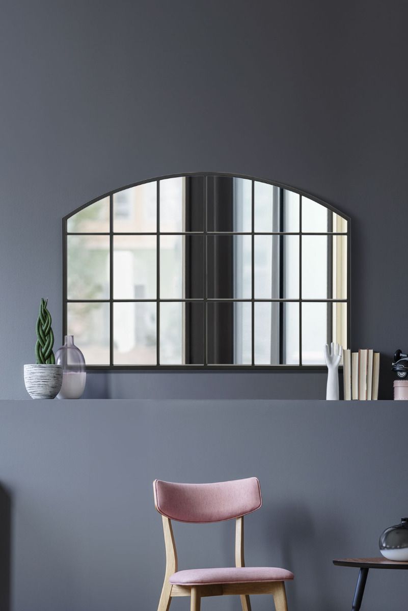 Black Framed Arched Wall Over Mantle Mirror 43" X 29" (110CM X 75CM)