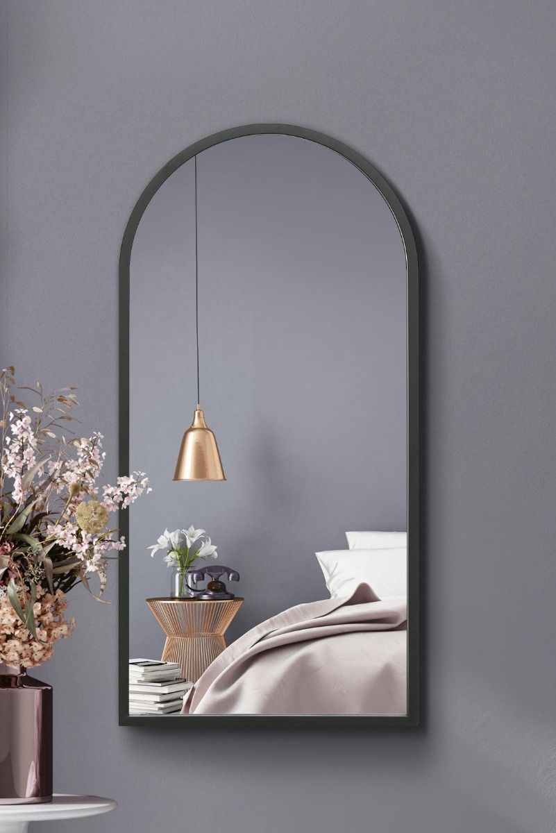 Black Metal Framed Arched Wall Mirror 31" X 16" (80CM X 40CM)