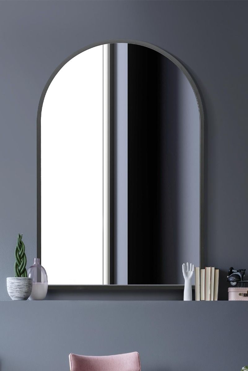 Black Metal Framed Arched Wall Mirror 47" X 31" (120CM X 80CM)