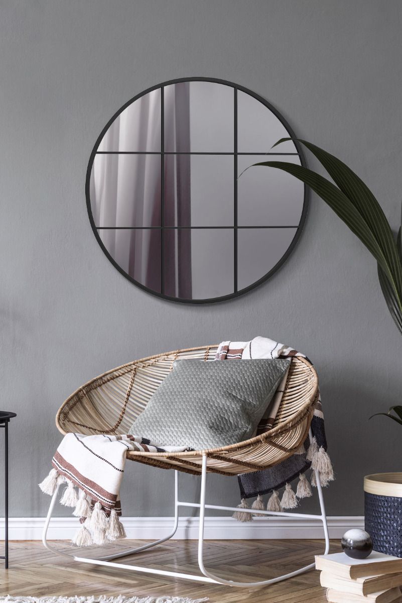 Introducing our latest mirror range featuring a solid black metal window frame with mirror glass fitted to a black all-weather backing. This stylish mirror is designed specifically for wall mounting, enhancing any room with its modern aesthetic. It comes equipped with pre-welded keyhole fixings on the back of the frame, ensuring straightforward installation and allowing the mirror to sit flush against the wall for a clean, contemporary look. Crafted from the highest quality materials, this mirror is robust and weighs approximately 10kg. Its dimensions measure 31" x 31" (80cm x 80cm), with a slim profile of 2cm depth. Ensure you use the appropriate wall fixing to securely mount this mirror to your wall type. Elevate your space with this round-shaped mirror, perfect for adding a touch of elegance to your decor.