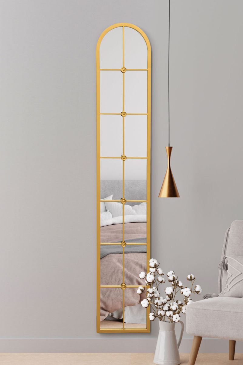 Gold Framed Arched Leaner Wall Mirror 67" X 12" (170CM X 30CM)