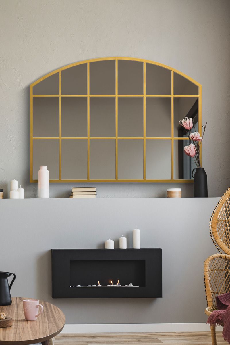 Gold Framed Arched Wall Over Mantle Mirror 35" X 26" (90CM X 65CM)