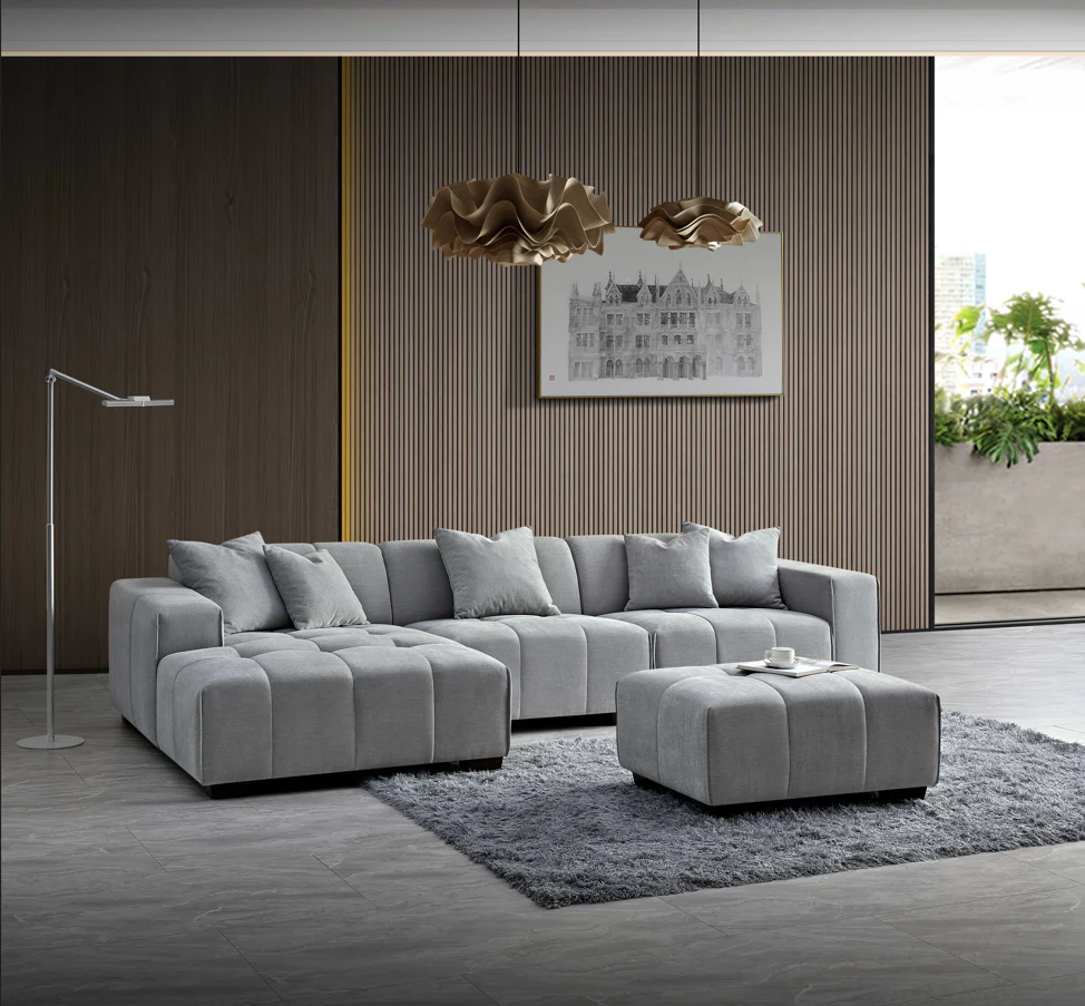 Built using three modular sections, the Leonard is easy to put together and available in left hand corner (as pictured) as well as a right hand corner plus an optional footstool at extra cost.