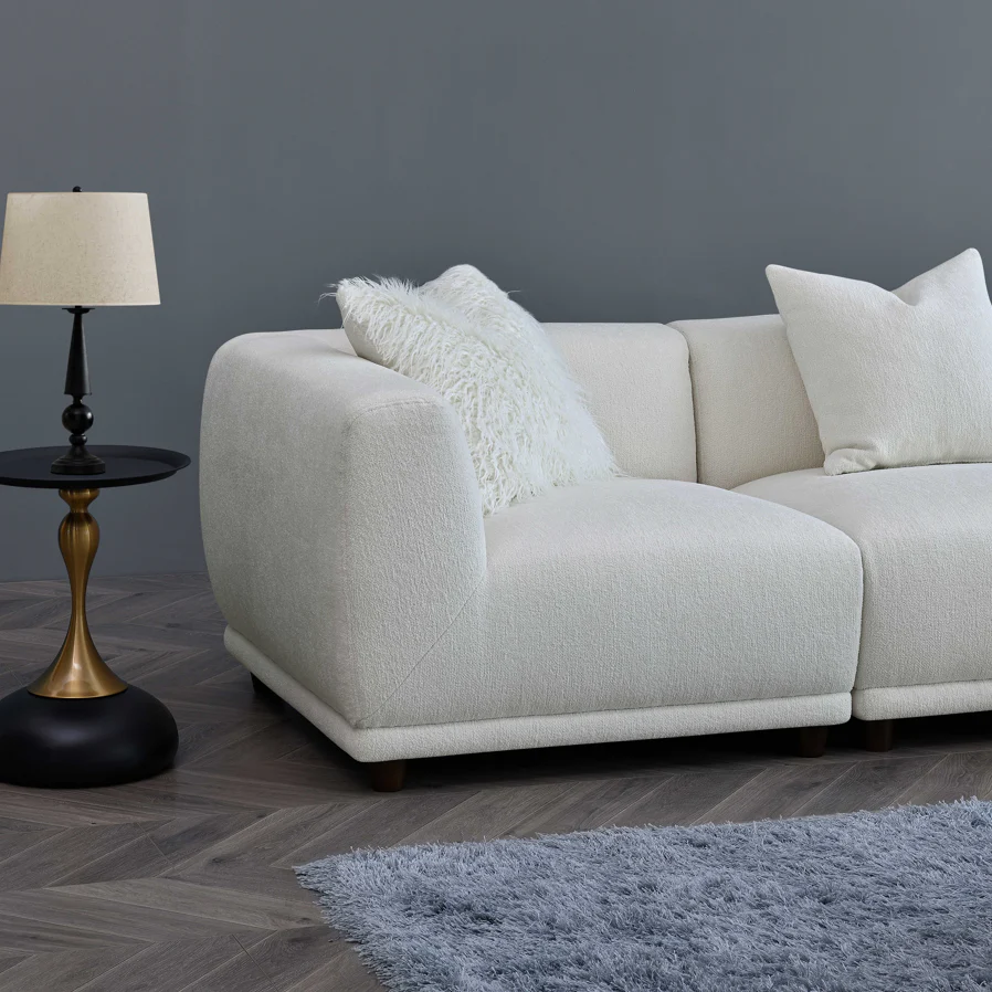 The Lottie modular corner sofa is a versatile and stylish addition to any living space. With its simple yet unique design, the Lottie Modular 5 seater corner sofa is more than just furniture; it's a statement piece that blends seamlessly with modern interiors.