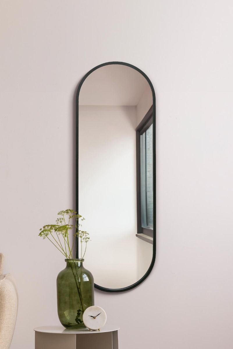 Enhance your space with our Double Arch Range - Torpedo Mirror, crafted with a Black Metal Frame enclosing Premium Mirror Glass and a Waterproof Backing. Designed for wall hanging, this mirror includes keyhole style welded fixings for effortless installation, ensuring a flush mount against the wall for a seamless look. Built from the finest materials, this mirror is substantial yet weighs approximately 15kgs, making it sturdy and durable. With overall dimensions of 63" x 22" (160cm x 55cm) and a frame width of 2cm at the face and depth of 3cm, it offers a striking focal point suitable for various interior settings.